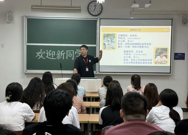 傍晚18:00,2025级各班正副辅导员带领班助理们于日华楼各教室开展新生破冰班会。班会从同学们渴望熟悉的校园基础设施开始,到“为做人而学习”的校训及“专、通、雅”协调发展的育人理念等内容,帮助同学们尽快具备成为“天华人”的实感。班助理组织新生开展了轻松有趣的破冰游戏,迅速拉近了同学们之间的距离。副辅导员以轻松诙谐的口吻提醒同学们开学之初的可能会遇到的各类诈骗事件,帮助大家培养自我保护意识。
