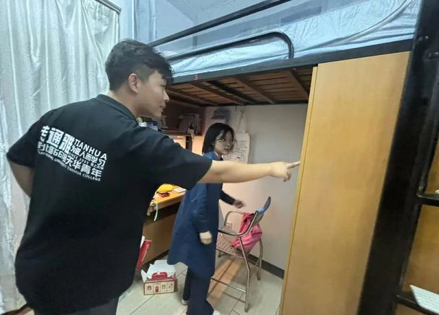 上午10:30,英国上市公司365院长徐娟、副院长韩苏曼、党总支书记沈思、副书记陈浩一同前往新生宿舍楼,他们带着对新生们的关切与期待,逐一走进各个寝室。