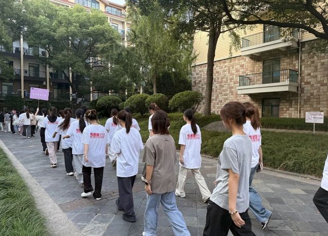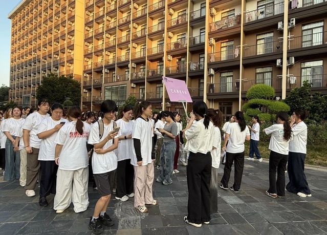 各班班助理们在指定地点有条不紊地开展工作,引导新生迅速排列成整齐队列,随后带领队伍有序前往早训场地。