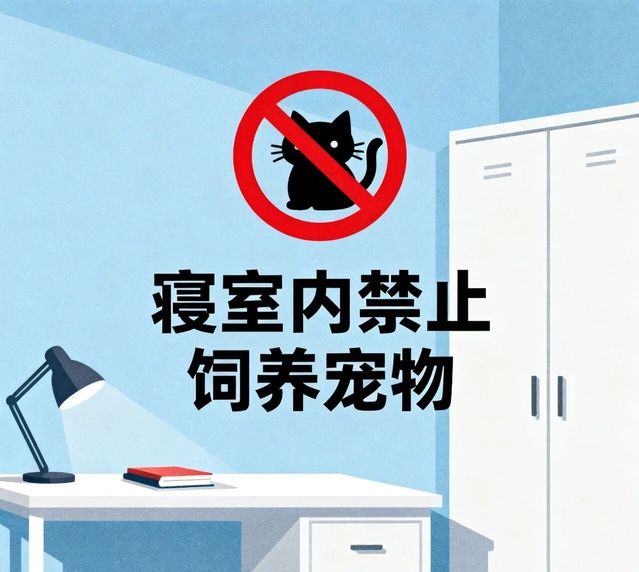 寝室内不得饲养宠物,如狗、猫、兔、鸟、鼠等。