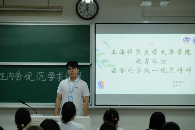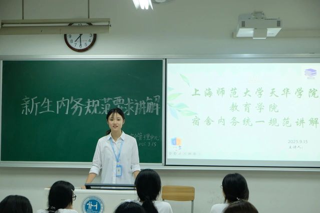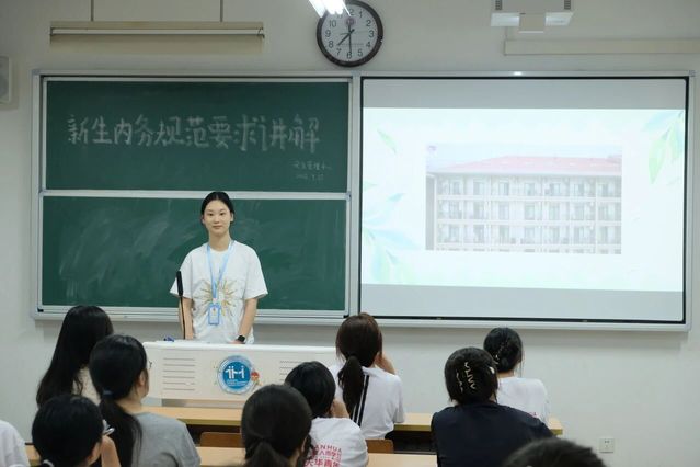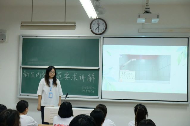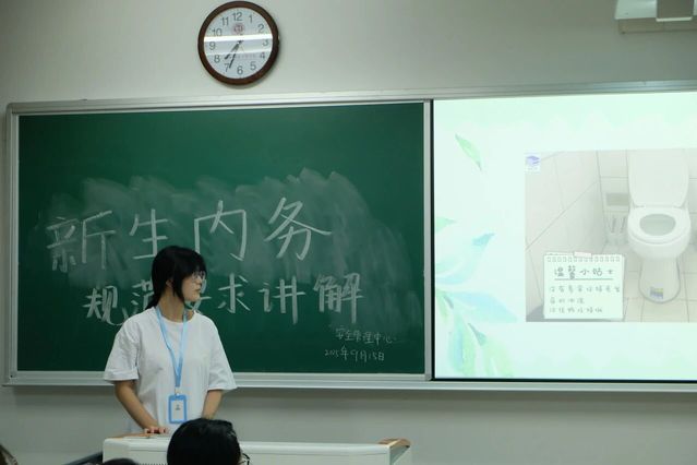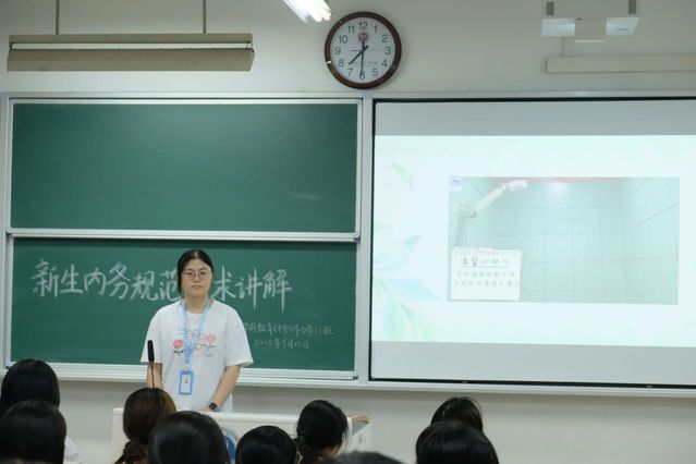 视频结束后,部员们借助条理清晰的PPT,对寝室卫生规范进行了系统且详细的介绍。PPT内容紧扣寝室十二项细则,从寝室整体环境的保持,到各类物品的摆放要求,再到安全注意事项等,都进行了逐一讲解。在讲解过程中,部员们还结合新生可能遇到的实际问题,进行了针对性的说明,确保新生们对各项规范都能准确把握。