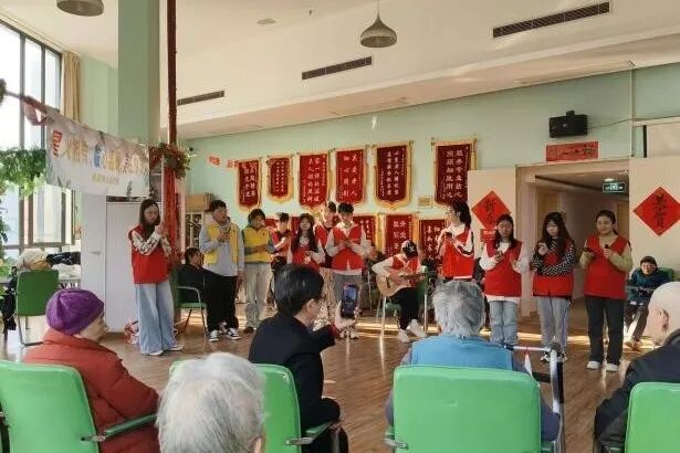 活动地点位于位于宝山区,在美庭阳光养老院中我们进行多次活动,带老人一起学折纸做手工,给老人带来表演,为他们带来快乐。