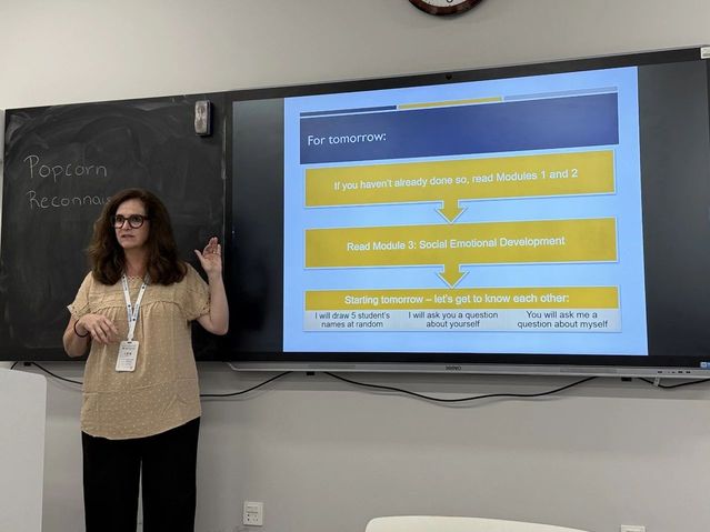 在入校培训会上,国交处老师与外教们分享了学校的校训“为做人而学习” 以及 “专、通、雅” 人才培养目标的内涵,还详细介绍了各类教学设备的功能与使用方法,为即将开始的授课做好充分准备。通过这次校园游览与培训,外教们对学校的教学环境和设施有了更深入的了解,也为后续的授课奠定了良好的基础。