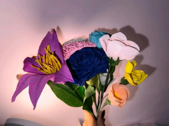 世界上的每一个人都是独一无二的,每一个人都有不同的光彩,就像这一束由不同的纸花构成的花束,缺了每一枝花都无法成立,借此呼吁大家关爱不同心灵世界的人们。