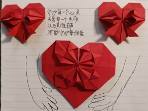 每一次向内折,都像在学着包容自己的不完美;每一次轻压出新的角度,都是调整看待世界的方式。纸在手中渐渐成型,心在觉察中慢慢完整。不必追求完美无瑕,就像我的纸爱心有着不齐的边角,却依然饱满生动。真正的心理健康,或许正是接纳所有折痕与棱角,在复杂中依然保持完整的姿态。