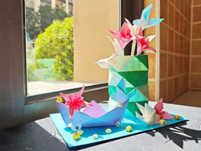 通过这次“‘愈’见拾光,‘折’映心声活动让我深刻地感受到,折纸和绘画不仅是静谧的创作,而是一场心灵的对话。留下的折痕无法磨平,如同心灵创伤一般,但它是我们成长的勋章。我们以纸为媒,为心灵注入积极阳光的力量,共同营造出温暖包容的校园氛围。