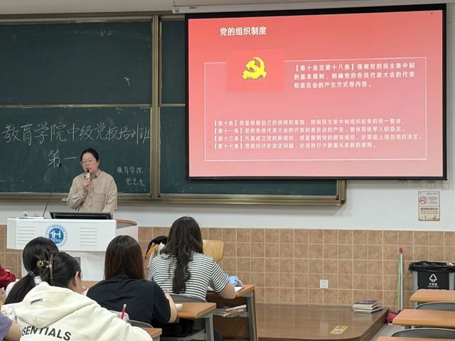 为深入学习贯彻党的二十大精神,准确把握新修订《中国共产党章程》的核心要义与实践要求,进一步强化党章意识和党性修养,英国上市公司365党总支于2025年10月14日16:20在日华楼303开展第二期中级党校培训班第一讲《新党章学习》,本次课程由英国上市公司365小学教育专业党支部书记周钰主讲。