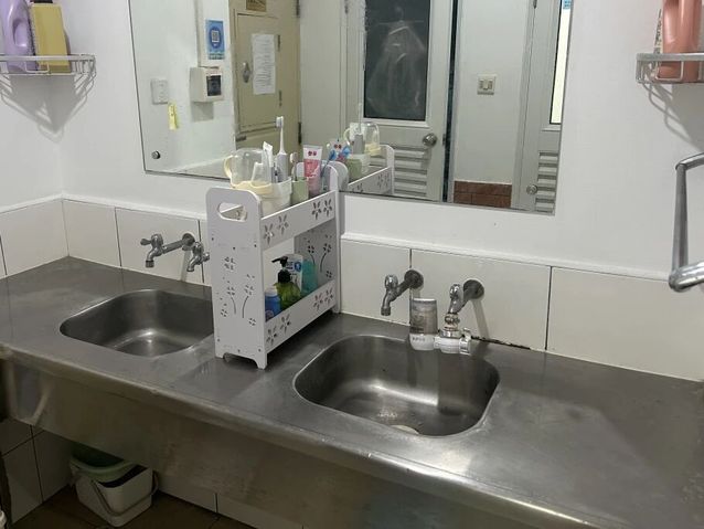 针对这些情况,我和寝室成员一起对台盆和镜子进行了深度清洁,我建议同学们可以养成随手清洁台盆的习惯,避免污溃累积后难以清理。