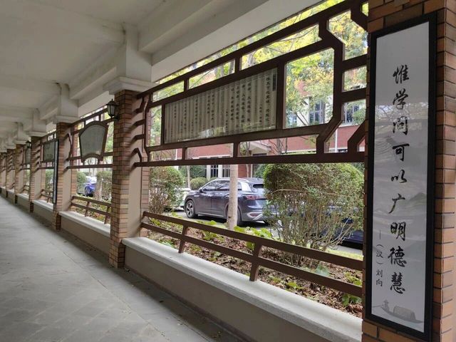 漫步校园文化长廊,古色古香的亭台先入眼帘,斑驳廊柱旁,苍劲墨迹与经典名言交织。听学姐讲解,和同伴交流,文字的力量与历史的厚重扑面而来。作为学子,这份文化温度不仅让我读懂传承的意义,更坚定了以进取精神打磨专业、追寻人生价值的方向。