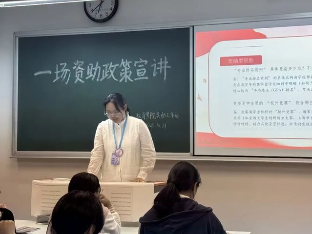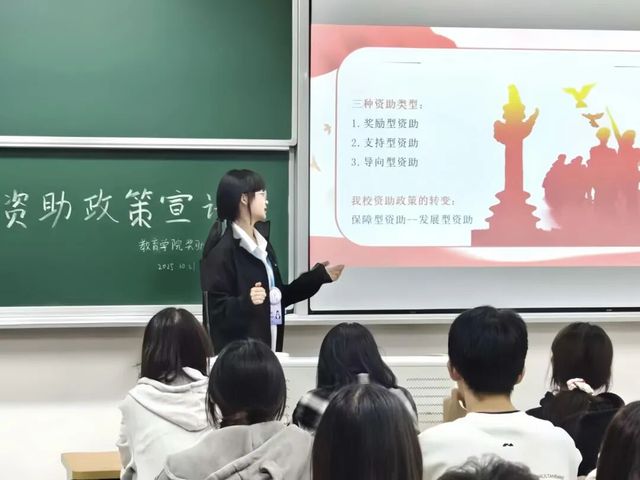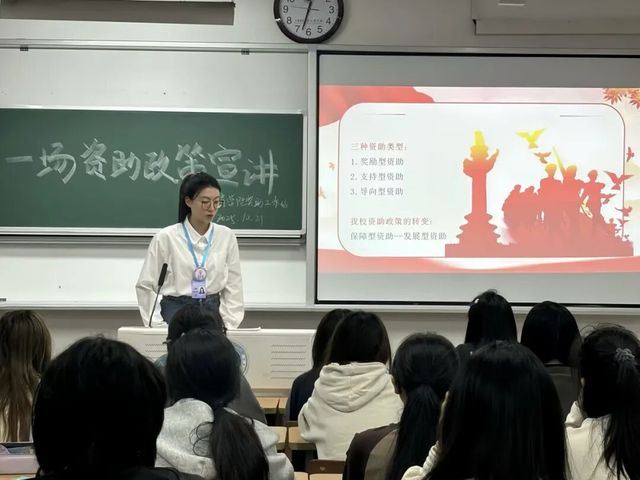 宣讲现场气氛活跃,同学们认真聆听、积极提问。在互动环节,大家围绕“专业排名具体标准”“勤工助学岗位申请”“助学贷款办理流程”等问题踊跃发言,宣讲员一一耐心解答,并结合实际案例给出具体建议。不少同学表示,通过本次宣讲,不仅对学校资助政策有了系统认识,也更清晰了自己大学阶段的努力方向。