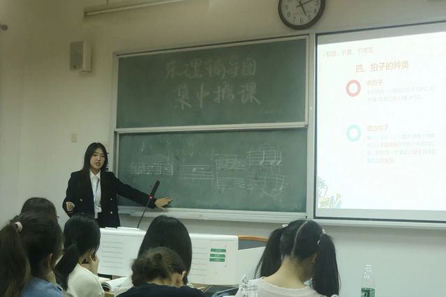 邓佳怡小先生则为大家讲述了记谱法的使用以及节奏与节拍的相关概念,带领大家认识了小节、小节线、终止线在乐谱中的位置,另外为了让同学们更加直观的理解不同的节奏型,邓佳怡小先生在讲解时带着一起用手打拍子来亲身感受不同节奏型的区别,同时也鼓励同学们平时可以结合钢琴多加练习来达到更好的效果。让同学们对于记谱法以及节拍与节奏的知识有了更加深入的了解。