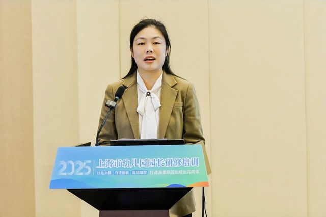 宝山区区直机关幼儿园园长陈燕华代表本期新学员代表发言,她表达了对专业成长的热切期盼,同时对搭建起园长研修班这份成长阶梯的每一份推动者致以最诚挚的谢意。她代表全体学员郑重承诺:会以惜时如金的态度积极投入学习,以空杯求真的心态钻研学习内容,以互学共进的诚意凝聚成长合力。希望学员们能将这份学习收获转化为行动力量,做到用心经营每一所园所,用心培育每一位教师,用心守护每一个孩子。