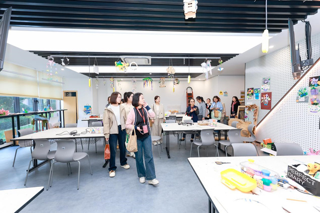 作为学前教育专业实践教学的核心载体,儿童教育科研实训中心展示了高校“产教融合、以训促学”的特色成果。在学生讲解员的带领下,园长们参观了多个功能区,其中针对上海市0—3岁托育一体化需求建设的托育实训中心尤为引人注目。仿真婴儿教具与模拟托班场景让园长们直观感受到师范生托育技能培养的全过程。在观摩环节,园长们观看了教学演示与AI赋能学前教育的应用案例,深入了解高校通过“传统技能+数字技术”培养复合型幼教人才的创新模式。