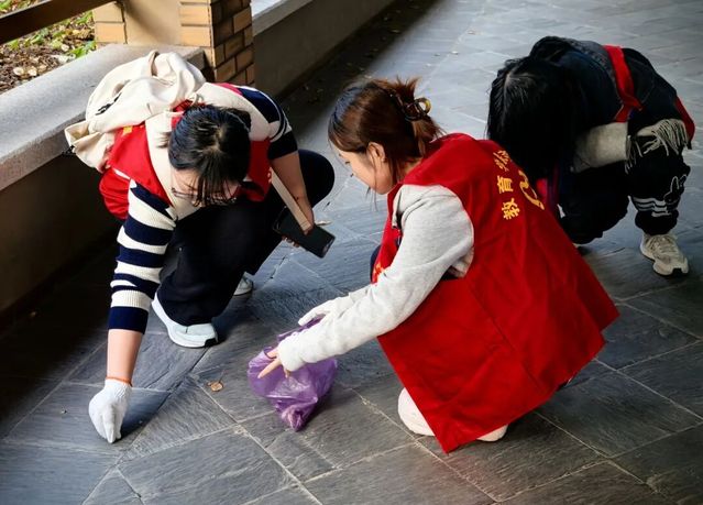 有的同学负责清扫散落的垃圾,有的同学则细致清理深处隐藏的杂物。他们弯着腰,专注地搜寻每一个可能被遗漏的垃圾,用双手将一片片垃圾清理干净,让校园各处重新焕发生机与活力。每一次清扫,都是对校园环境的守护,更是对劳动精神的深刻诠释。