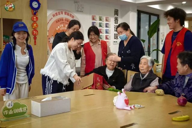 10月18日,志愿者们来到上海美庭阳光养老院,为老人们带来了一场趣味盎然的生日会活动。活动中,志愿者们组织了“翻鸡蛋”趣味游戏,老人们兴致高昂、乐在其中。游戏结束后,志愿者们为当月过生日的老人送上祝福和寿桃点心,他们满脸笑意,向志愿者表达感谢,养老院洋溢着温暖和睦的氛围。