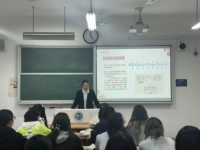 姚知彦小先生先以互动提问“两个音的高低距离是什么”引入音程内容,通过让同学分辨先后和同时发声的音,通俗讲解了旋律与和声音程的区别,再结合简单示例让大家理解单音程与复音程、协和与不协和音程的不同听感,还邀请学生动手移动音符,直观感受音程转位的方法。