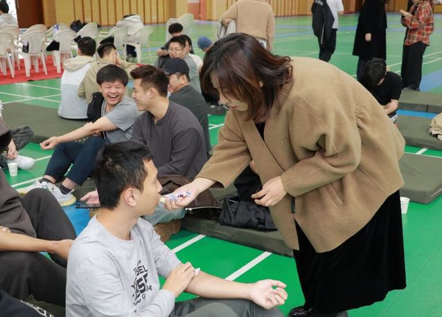 吴镜华老师带领的专升本班级同学们,以极高的热情投身献血公益活动,他们积极响应、踊跃参与,展现出强烈的集体凝聚力与社会责任感。他们不仅用热血传递爱心,更在过程中彰显了退伍军人勇于担当、心怀大爱的精神风貌,成为献血活动中一道亮丽的风景线。