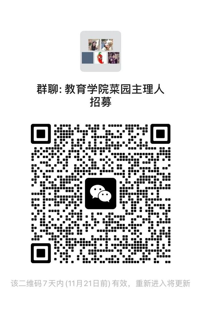 如果你热爱田园、有责任心,愿意用心照看这片焕然一新的菜园,快来扫描下方二维码,进入群聊,和我们一起在教育的蓝天下,种出属于我们的菜园吧!