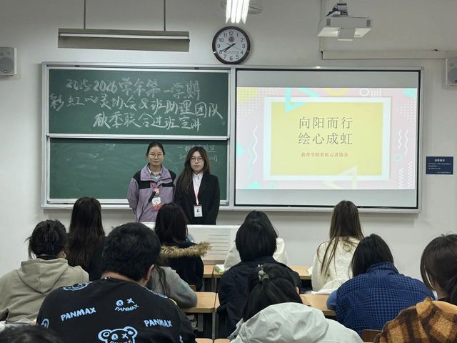 本次宣讲在掌声中圆满落幕,但同学们的成长之旅才刚刚启航。愿同学们在未来的大学生活中,锤炼积极乐观的心理韧性,奠定扎实深厚的学业根基,拥抱丰富多彩的个人成长。彩虹心灵协会与班助理团队将始终相伴,在思想引导、学业辅导与心理支持的三重护航下,与各位共同书写一段温暖而闪耀的青春篇章!