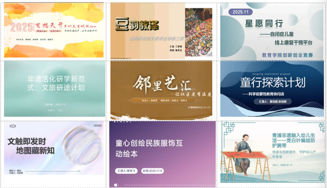参赛团队涵盖教育技术、儿童发展、社会情感、课程创设、文化传播等多个方向,充分体现了天华学子将专业所学与社会需求相结合的探索精神。在汇报环节,各团队通过PPT展示、案例分析、技术演示等方式详细阐述项目背景、创新目标与实施方案;面对评委老师的提问,同学们思路清晰、反应敏捷,展现出良好的学术素养与应用能力。