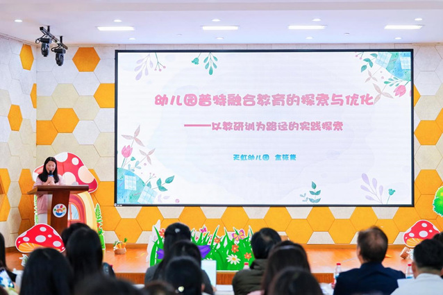 11月14日,上海市浦东新区天虹幼儿园举行“融合教育,让每一个孩子拥有彩虹童年”主题展示活动,向来访园长呈现普特融合的教育实践探索。天虹幼儿园创办于2011年,秉承陈鹤琴先生“做人、做中国人、做现代中国人”的活教育思想,凝练形成“尊重天性 文化育人 绘就彩虹”的办园理念,“中国文化,让每一个孩子拥有彩虹童年”的课程理念,以及“尊人格、尚文化、重共育、绘彩虹”的校园文化。