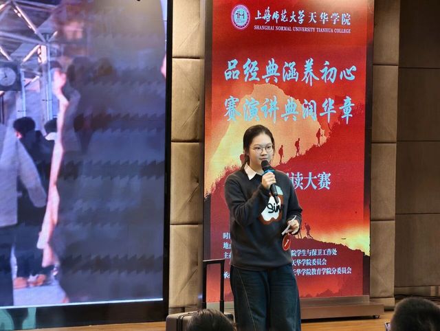 人工智能学院23人工智能1班的陈思君同学,她演讲的篇目是《诗经》。她以“品《诗经》初心,谱天华华章”为主题进行了精彩分享。她从“诗韵润心,知行合一”出发,借志愿活动等实例展现实践与知识融合;在“风雅颂魂,专通雅行”部分,结合校园文化与校训,强调学识应助力品行与德行提升;最后于“经典薪火,美美与共”中,传达出经典传