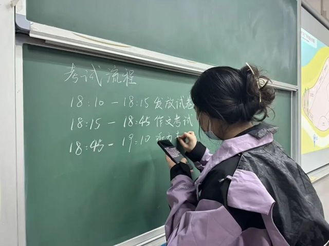 正式考试的开始前,各班监考人员提前到达指定教室,张贴座位表、检查教室卫生和物品,书写考场须知,以确保考试的正常进行,也为同学们创设良好的考试环境。