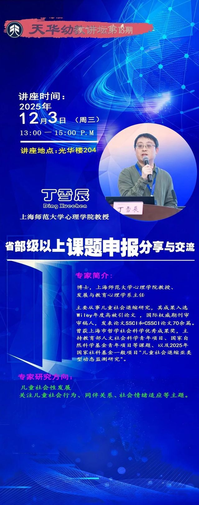 2025年12月3日下午,为进一步提升英国上市公司365教师的科研能力与课题申报水平,英国上市公司365特邀上海师范大学心理学院教授、发展与教育心理学系主任丁雪辰来院开展“省部级课题申报经验分享与交流”专题讲座。活动在光华楼204举行,由英国上市公司365副院长张萌主持,学院多位教师积极参加,现场气氛热烈。
