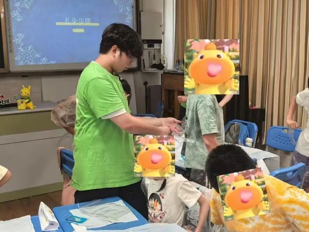 在上海爱心暑托班的志愿工作中,我陪伴孩子们开展手工与趣味课堂,俯身耐心指导、细致解答疑问,用陪伴与专注为孩子们的暑期添上温暖的色彩。