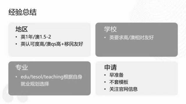 杨慧凌结合英澳两国申请经历,对比两地院校优势,介绍专业选择方向,聚焦申请材料筹备细节,清晰讲解滚动录取制及官网申请流程。
