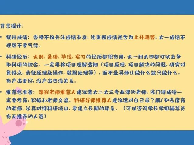 董碧霜聚焦港硕申请,从个人申请时间线、实战经验及专属建议切入,详解香港求学优势,重点梳理雅思备考、项目筛选、材料准备、推荐信撰写、面试应对等核心注意事项,同时建议申请者着力提升成绩、科研经历等背景实力,有序整合各类项目信息。