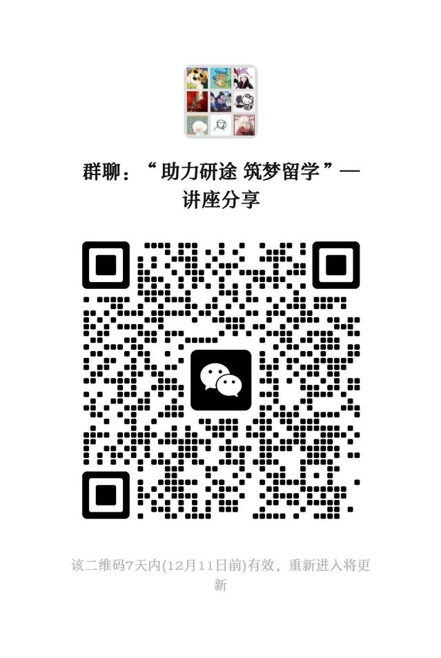为方便后续交流沟通,相关主题分享和通知将及时在专属交流群内发布,同学们若有留学相关疑问,也可在群内随时提问、互助交流,欢迎大家踊跃加入,共同为留学梦想蓄力赋能。