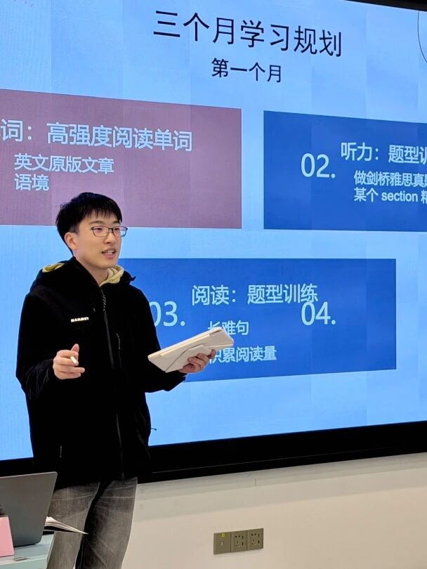 12月3日,主讲人孙天行和陈欣瑜向同学们分享海外院校申请语言关备考全攻略,倾囊相授语言考试高效备考经验。