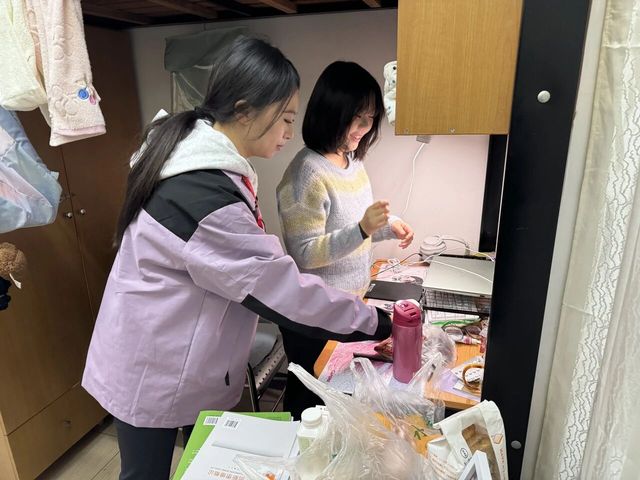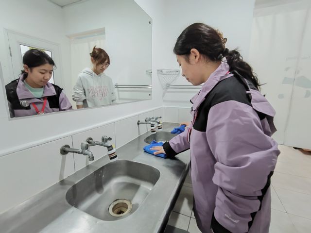 同时,阳台作为易被忽略的“延伸空间”,也是此次检查的重点。班助理们查看了阳台是否有杂物堆积、地面是否整洁,对存在的问题现场与同学们沟通并提出整改建议,引导大家养成良好卫生习惯,共建整洁有序的居住环境。