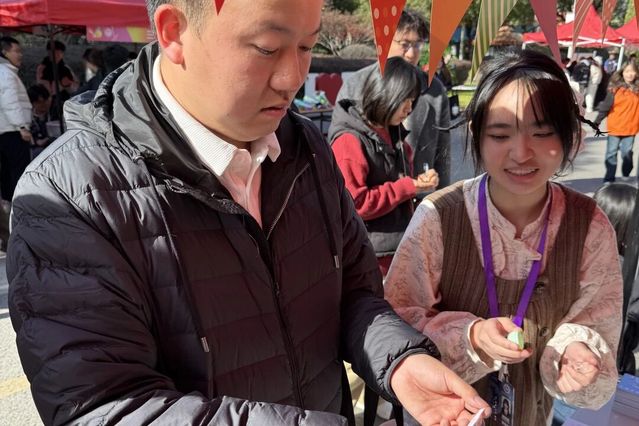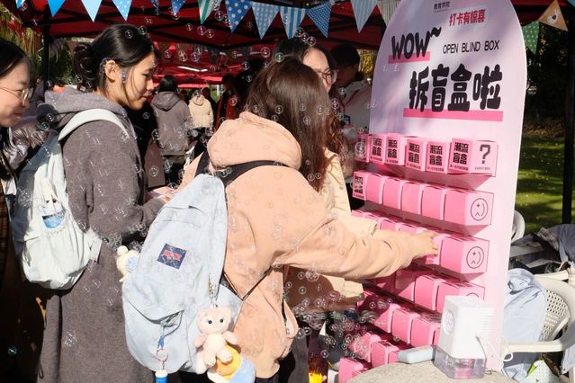 扭蛋抽题:充满惊喜的扭蛋机吸引众多同学驻足。轻轻一转,随机滚出写有各类趣味问题的小球。参与者需现场作答,成功解题即可积累“小红花”。这一环节既考验知识储备与临场反应,也以轻松的形式促进了思维互动与交流。