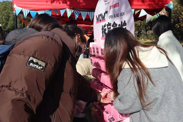 盲盒抽奖:凭游戏获得的“小红花”,参与者可在盲盒墙上抽取幸运奖品。每个盲盒内藏有不同礼物纸条,现场兑换各式实用好礼。抽奖过程悬念迭起、欢笑不断,将活动的气氛推向高潮。