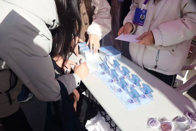 廿载寄语墙:现场设立一面大型毛毡祝福墙,同学们领取校园主题明信片,写下对学校20周年华诞的真挚祝愿。每一张明信片都承载着深情与期待,被亲手贴于墙上,渐渐汇聚成一片温暖的“祝福海洋”,成为活动中最具仪式感的留念一角。