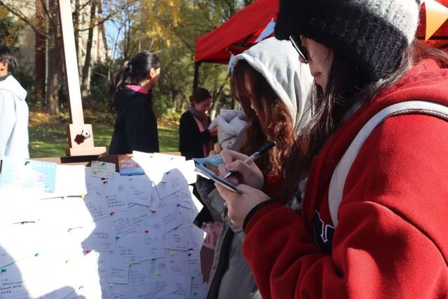 师生们积极融入到各项活动之中,在祝福墙前俯身书写,用笔墨传递深厚情谊。大家共同沉浸于校庆的喜悦中,也在互动中加深了情感联结,留下难忘的校庆记忆。