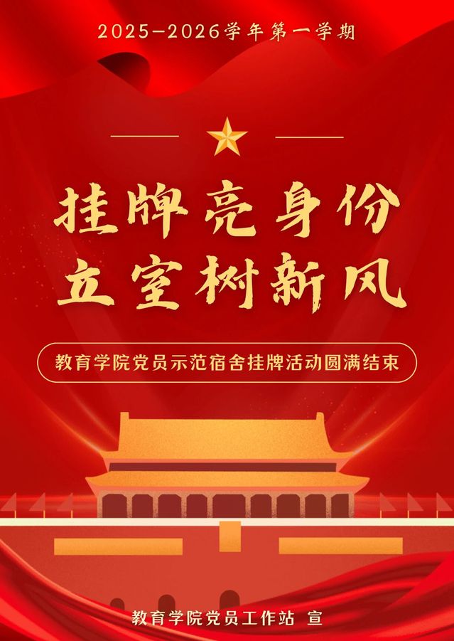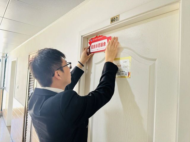 经综合考评筛选出兼具示范力的优秀党员宿舍,举行挂牌表彰仪式,切实推动学生党员“亮身份、立标杆”——不仅在宿舍环境上作示范,更在学业互助、思想凝聚等方面树榜样,夯实宿舍育人阵地的多元建设基础。