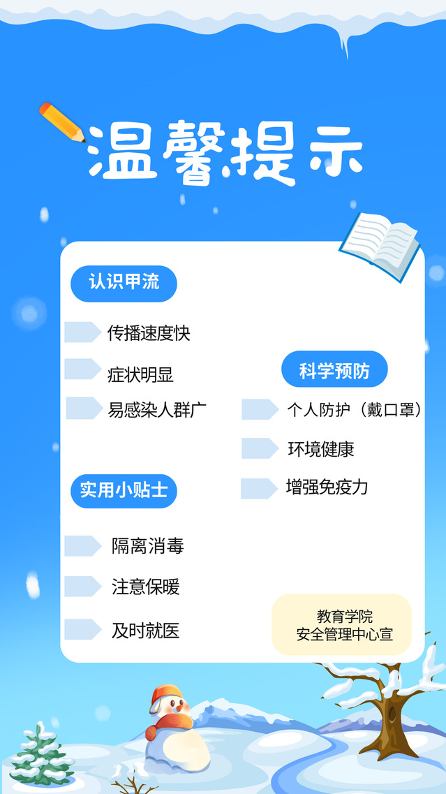 冬意渐浓,流感与甲流进入高发期,做好预防刻不容缓。只要我们正确认识甲流等流行性病毒,坚持做好个人防护、保持健康习惯、增强免疫力,必要时接种疫苗,就能最大程度降低感染风险。当每个人都积极参与,就能为自己和他人织就一张坚实的健康防护网!