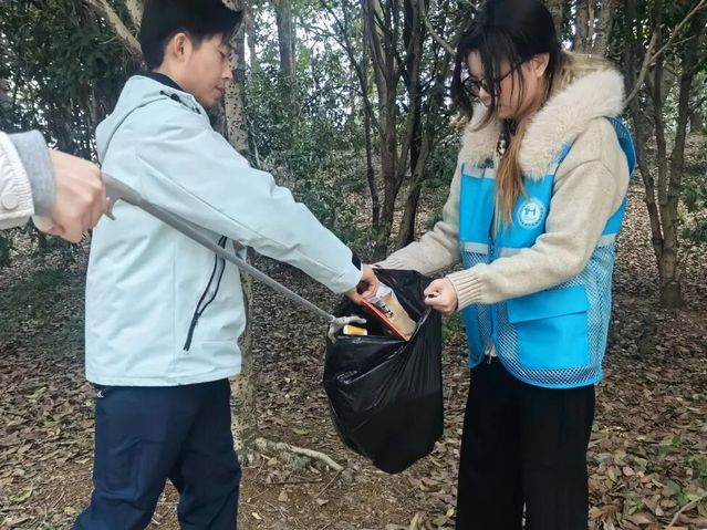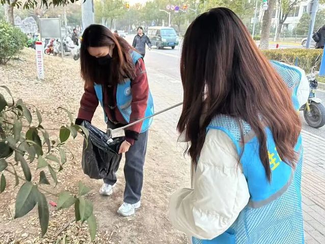 抵达北门外绿化带后,志愿者们明确分工、默契协作,秉持严谨态度排查卫生死角,有序开展废弃物清理与垃圾分类处理工作。