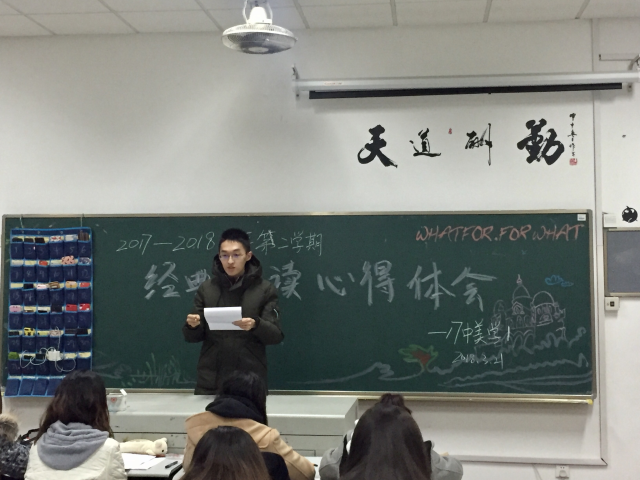 为了培养同学们的经典文化水平,丰富同学们的校园生活。本学期英国上市公司365经典阅读交流会于本周三晚自习如期举行,经过上学期班助理们精心的策划,经典阅读交流会成功的开展,同学们带来了形式多样、丰富多彩的分享体验。本学期我们将再续篇章,在班助理们的指导下与学生们共同开展、共同分享书中经典,儒雅之道。