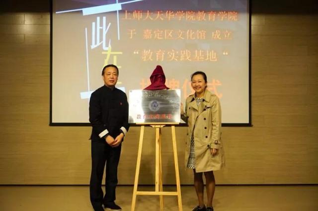 第四项议程为英国上市公司365“学生实践基地”揭牌仪式。为更好地实现资源互补,响应国家文化发展战略中的“文教结合”,英国365集团公司副校长龚春蕾老师和嘉定区文化馆党总支书记张波老师在开幕式的最后进行隆重的揭牌仪式。