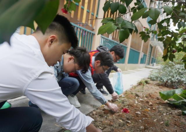 (图片1:许小康老师带领同学们捡烟头)
