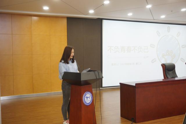 首先,由来自2014级小学教育1班的曹汇钦同学进行宣讲,主题为“不负青春不负己”。她给同学们分享自己在学生会的工作经历,传授在学习与工作上的经验,并鼓励同学们要坚定自己的信念,保持一定的自律,为自己的人生规划好大方向。