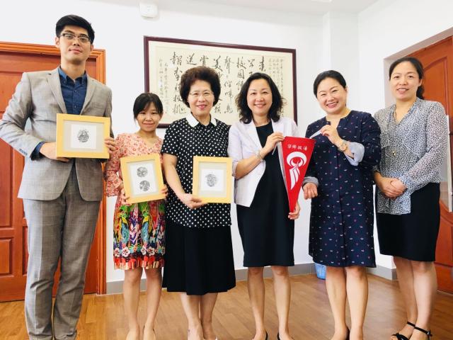 最后,两方人员分别向对方赠送了代表双方办学理念的校旗、学生作品等纪念礼物,本次交流圆满结束。