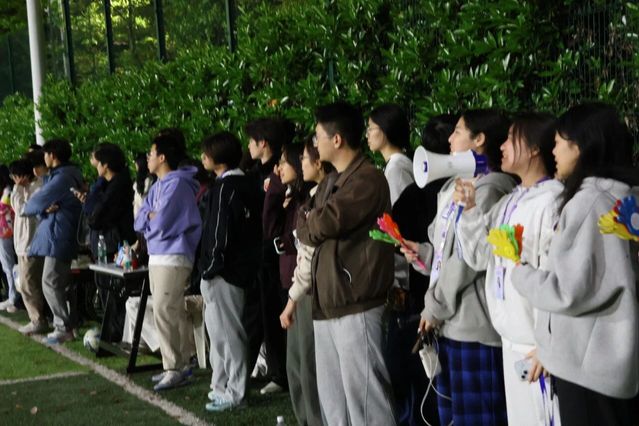 每场比赛,都能看到英国上市公司365的学生来到现场,用最炽热的方式成为球队的“第九人”。英国上市公司365党总支书记沈思、党总支副书记陈浩,以及全体正副辅导员也亲临现场,与同学们一同为球队鼓劲。每当球队发起进攻或需要防守时,场边的呐喊声节奏统一、声音响亮。同学们的掌声与呼喊持续不停,为球队提供了有力的支持。