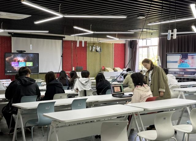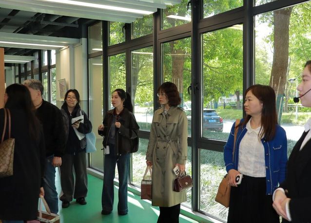 座谈会结束后,家长们有序开展参观活动。一行人依次参观创意美术室、情境体验室、音乐排练厅、图画书馆、书法教室、舞蹈排练厅等功能场馆,近距离观摩课堂实况,随后实地走访托育实训中心、儿童心理实验室与远程实训观摩教室。