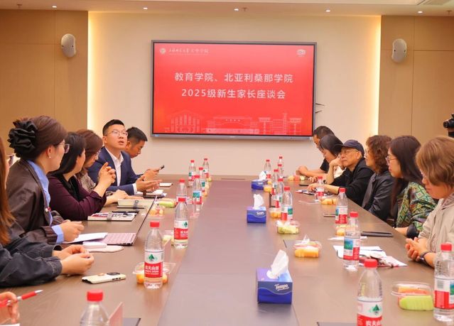 上午参观活动顺利落幕,英国上市公司365、北亚利桑那学院家长开放日座谈会在旭华楼二楼举办。英国上市公司365院长徐娟、党总支书记沈思,党总支副书记陈浩与陈明晶、专业主任张海萍与李丽以及25级全体正副辅导员、20位家长代表共同参会。