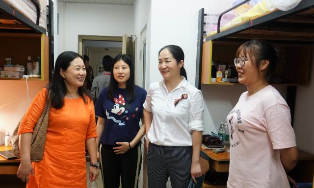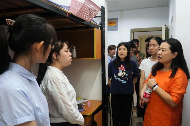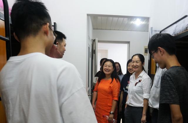 领导和辅导员们随机挑选走访了英国上市公司3651号楼和5号楼的七个寝室。期间,滕薇老师和答英娟老师与来自各地的18级学生亲切交谈,详细询问同学们来自哪里、饮食上是否适应、入校后的感受等情况,并让同学们为接下来的大学生活做好准备。